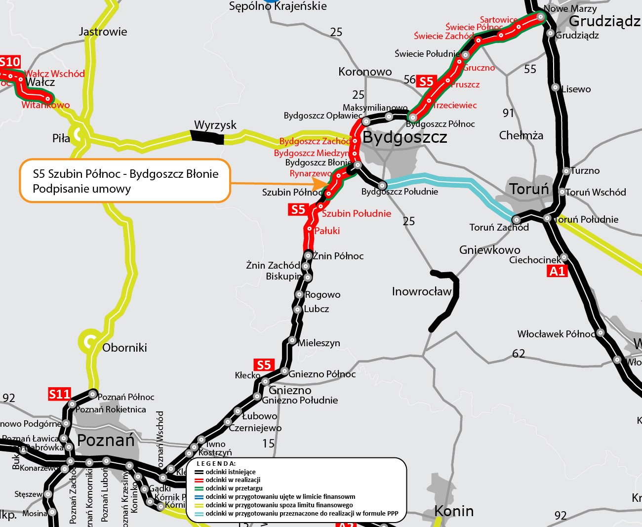 Bydgoszcz Błonie – Szubin Północ to blisko 10-kilometrowy odcinek drogi ekspresowej S-5, którego budowy nie dokończyła włoska firma Impresa Pizzarotti. Realizacją kontraktu zajmie się konsorcjum firm, którego liderem jest PBDiM Kobylarnia S.A. a partnerem MIRBUD S.A. Umowę w imieniu konsorcjum podpisali: wiceprezes Michał Niemyt oraz członek zarządu Tomasz Jaśkiewicz.