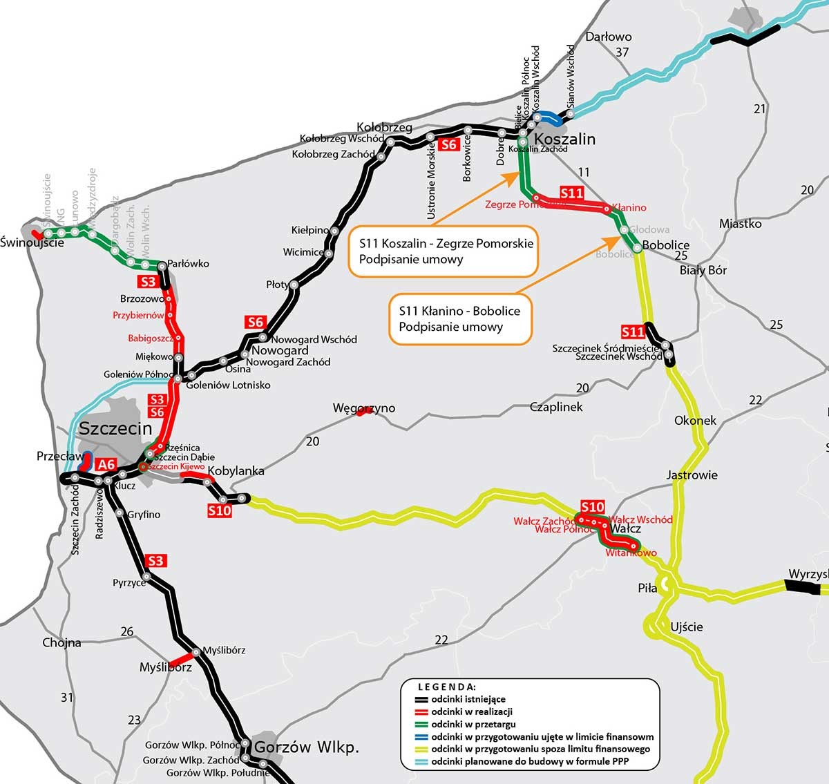 „Droga życia” – tak mieszkańcy regionu Środkowego Pomorza nazywają drogę krajową nr 11 na odcinku od Koszalina do Szczecinka. Droga ta, szczególnie w sezonie turystycznym, jest przeciążona i niebezpieczna dla kierowców i mieszkańców sąsiadujących miejscowości. Właśnie podpisano umowy na przebudowę tej drogi do parametrów drogi ekspresowej. Jeden z odcinków wybuduje konsorcjum firm w składzie: PBDiM Kobylarnia S.A. (lider konsorcjum) oraz MIRBUD S.A. (partner konsorcjum).