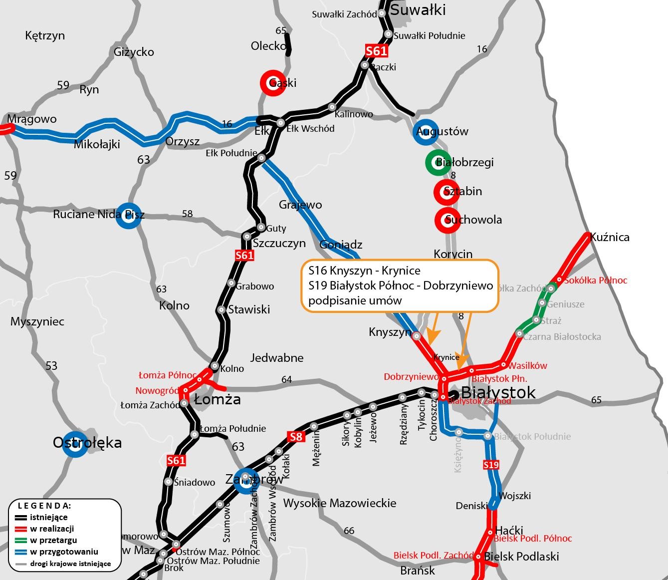 Z kolei 14 maja w Białymstoku podpisaliśmy umowę na budowę drogi ekspresowej S16 na odcinku Knyszyn – Krynice o długości 8,44 km. Na tym odcinku zaprojektowano 12 obiektów inżynierskich w tym cztery wiadukty, sześć przejść dla zwierząt oraz dwa przepusty o funkcji ekologicznej.
