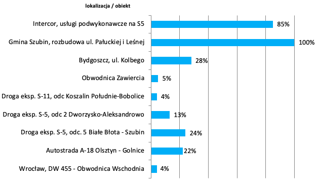 - „Wymiana warstwy ścieralnej na obiektach inżynieryjnych na terenie miasta Bydgoszczy” dla Zarząd Dróg Miejskich i Komunikacji Publicznej w Bydgoszczy na kwotę 379 122,95 zł netto.