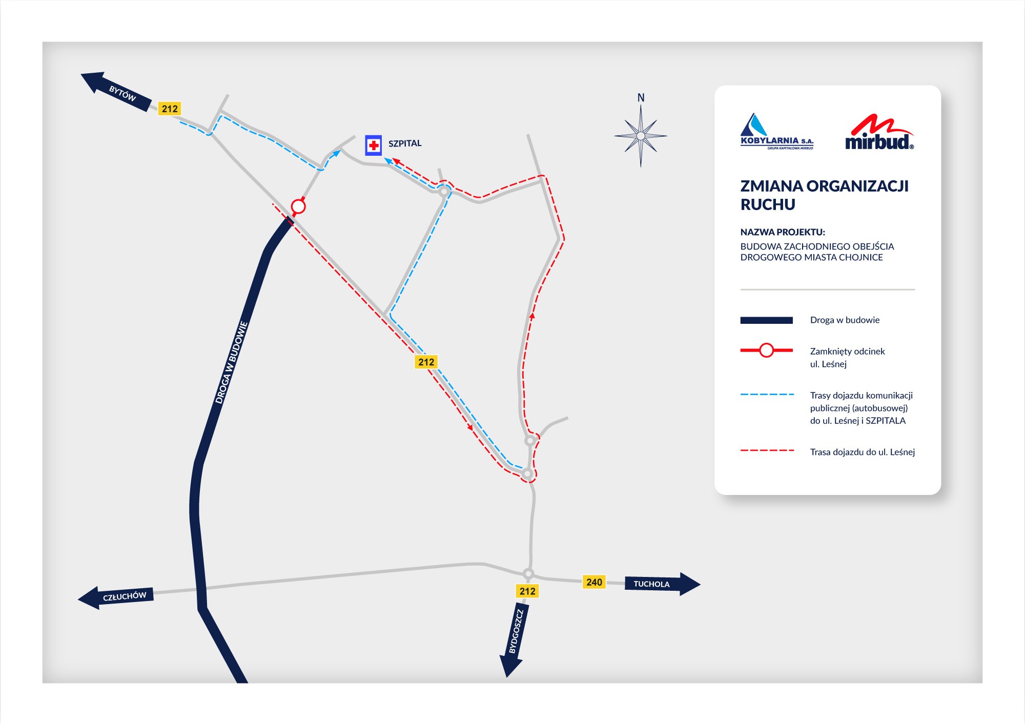Wprowadzana zmiana odbywa się w związku z budową zachodniego obejścia miasta Chojnice. Wykonawca zadania, konsorcjum firm KOBYLARNIA SA oraz MIRBUD SA, prosi o zachowanie szczególnej ostrożności.