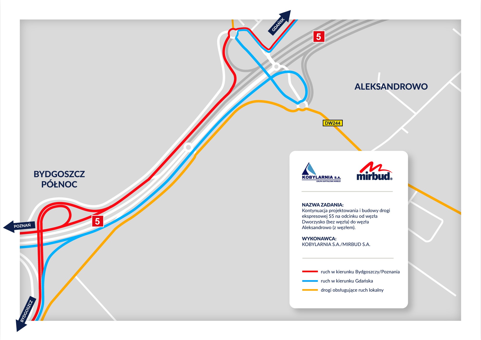 Wrowadzona zmiana pozwoli na przeprowadzenie dalszych prac na jezdni głównej na połączeniu z drogą S5 - obwodnicą Bydgoszczy.