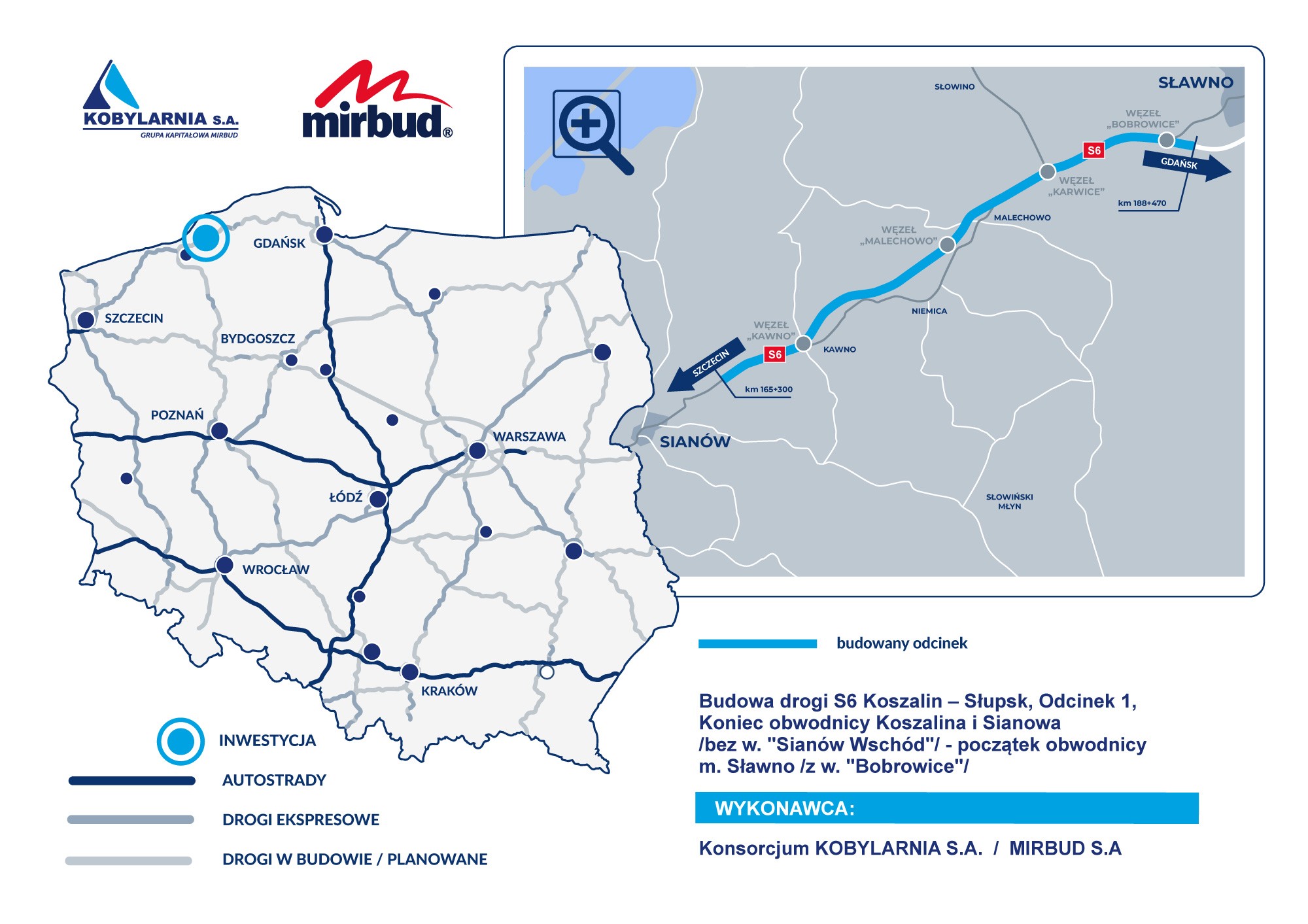Zaprojektowanie i wykonanie zadania publicznego pn. „Budowa drogi S6 Koszalin – Słupsk, Odcinek 1, Koniec obwodnicy Koszalina i Sianowa /bez w. "Sianów Wschód"/ - początek obwodnicy m. Sławno /z w. "Bobrowice"/”.