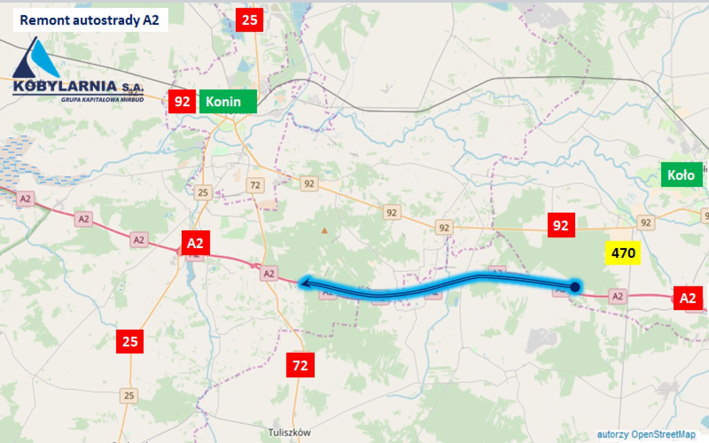 Remont autostrady A2 na odcinku Koło-Konin