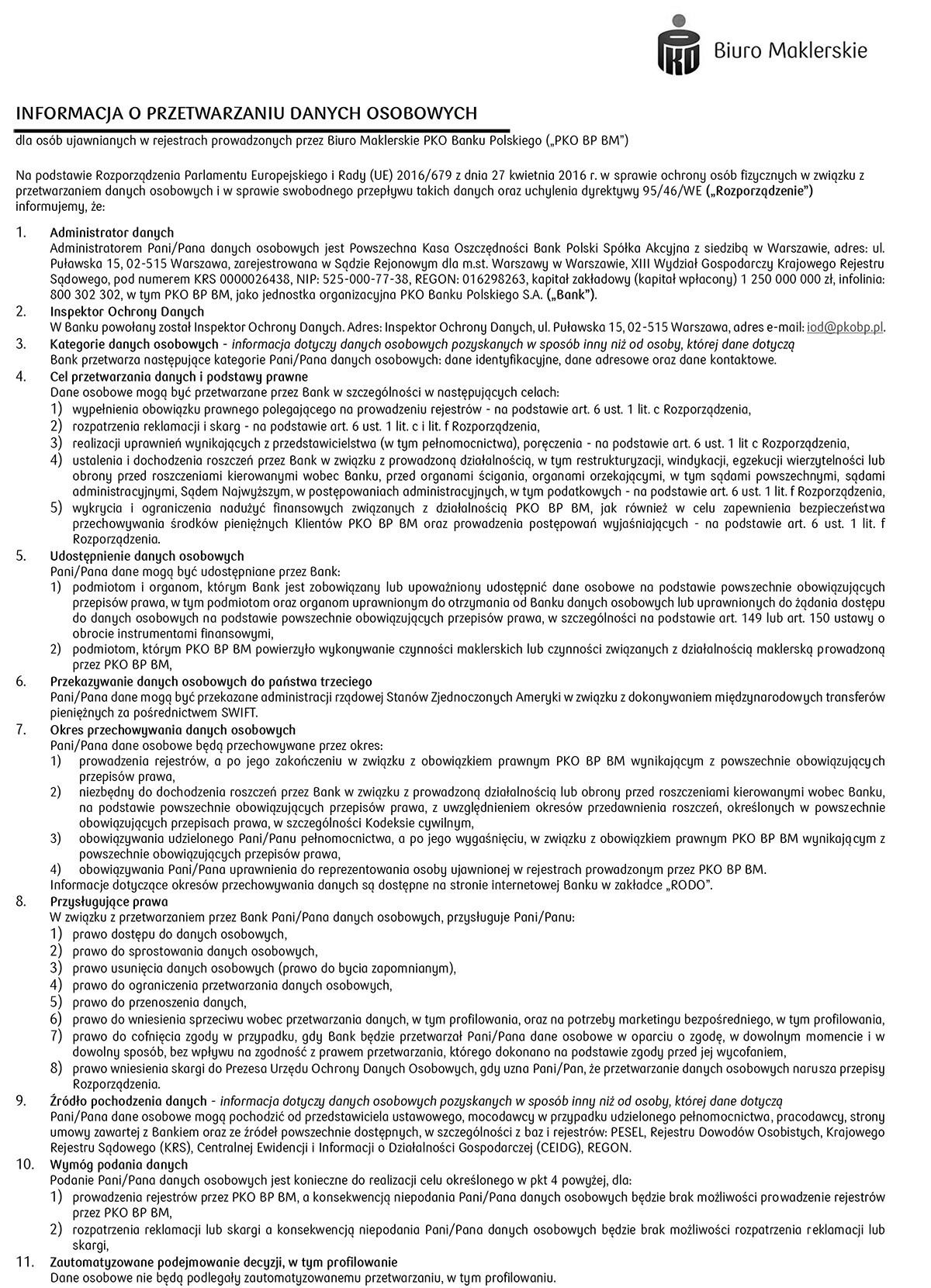 Informacja PKO BP BM o przetwarzaniu danych osobowych osób ujawnianych w Rejestrze Akcjonariuszy stanowi załącznik do niniejszego komunikatu.